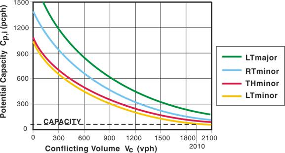 left turn), using the graphical solution presented in the HCM, without