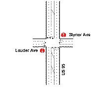 The figures below show the existing U.S. 95/Styner-Lauder Avenue intersection geometry.