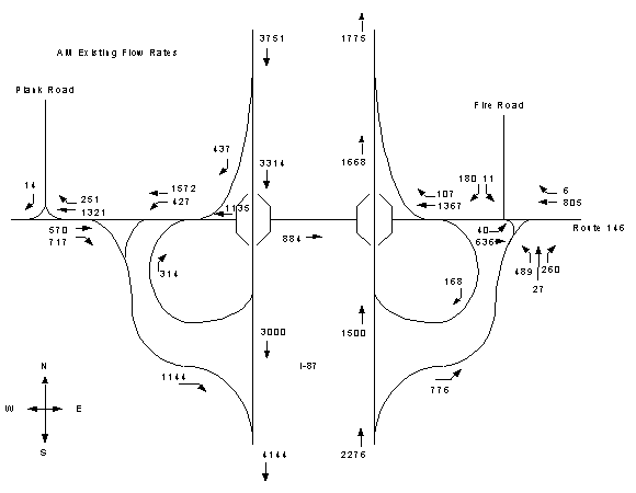 Exhibit 2-49. I-87 Interchange AM Existing Volumes