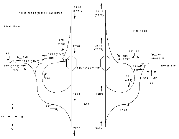 Exhibit 2-52. I-87 Interchange PM Without and With Condition Volumes