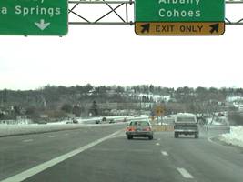 see the signs for the loop ramp to I-787 north and the merge sign for the